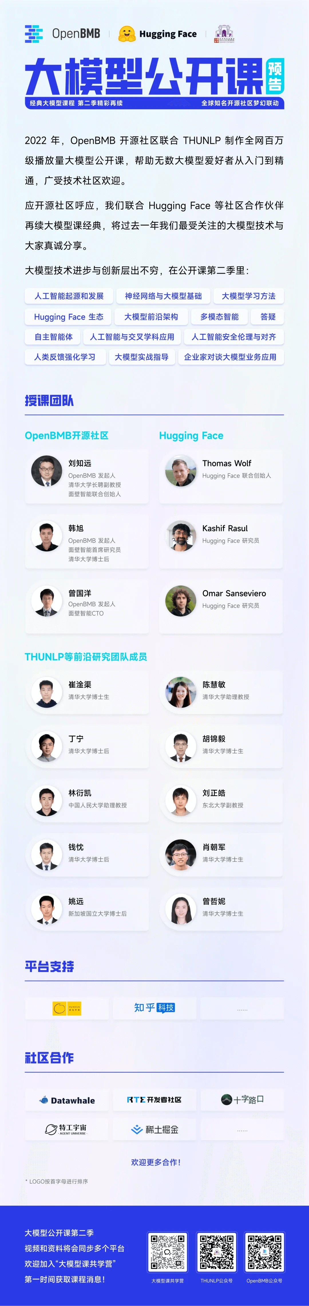 这个夏天,THUNLP 携手 Hugging Face 和 OpenBMB,推出大模型公开课第二季。
